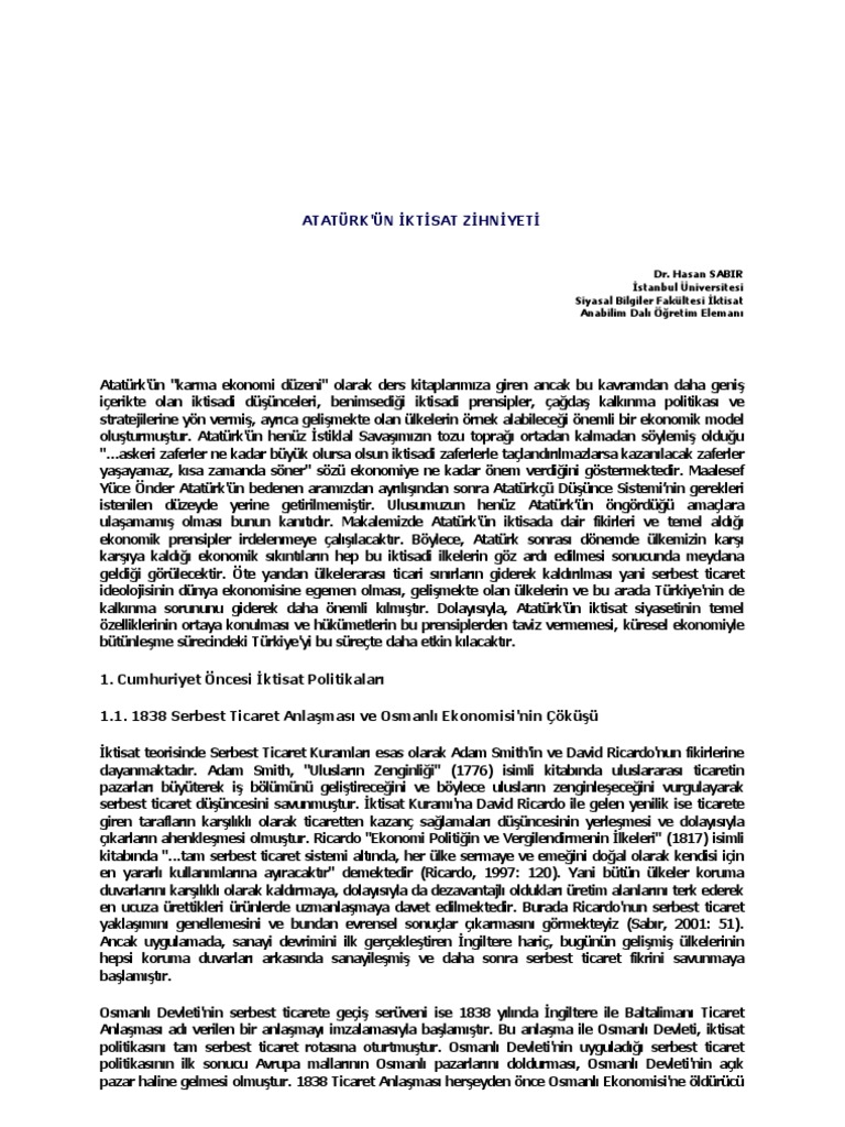 Ataturk Un Iktisat Zihniyet
