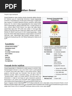 Osmanlı Padişahları Listesi Pdf